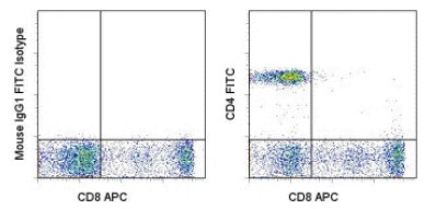 Description: The SK3 monoclonal antibody reacts with human CD4, a 59-kDa cell surface receptor expressed by a majority of thymocytes, a subpopulation of mature T helper cells, and, in low levels, monocytes. CD4 is a receptor for the human immunodeficiency virus (HIV). SK3 blocks HIV binding and mixed lymphocyte reaction. The SK3 and RPA-T4 monoclonal antibodies do not cross-block binding, suggesting recognition of distinct epitopes.