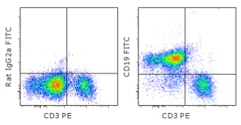 Description: The eBio1D3 monoclonal antibody reacts with mouse CD19, a 95 kDa transmembrane glycoprotein. CD19 is expressed by B cells during all stages of development excluding the terminally differentiated plasma cells. Follicular dendritic cells also express CD19. Together CD21, CD81, MHC class II, and CD19 form a multimolecular complex that associates with the BCR. Signaling through CD19 induces tyrosine phosphorylation, calcium flux and proliferation of B cells.