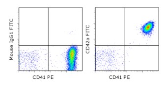 Description: This GR-P monoclonal antibody reacts with human CD42a, which is also known as glycoprotein IX (GPIX). CD42a is a 22-kDa transmembrane protein that is constitutively expressed on platelets and megakaryocytes. CD42a associates with CD42b, CD42c, and CD42d to form the GPIb-V-IX complex, which binds the von Willebrand factor, an endothelial adhesion protein, to mediate platelet adhesion and activation. This binding results in platelet aggregation at sites of vascular injury. This receptor complex has also been demonstrated to bind thrombin, factors XI and XII, P-selectin, and Mac-1. Finally, a point mutation within the leucine-rich motif of CD42a has been linked to Bernard-Soulier syndrome.