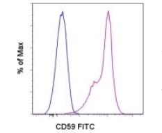 Description: The MEM-43 monoclonal antibody reacts with human CD59, also known as protectin, membrane inhibitor of reactive lysis (MIRL), and membrane-attack-complex-inhibitory factor (MACIF). CD59 is an approximately 19 kDa GPI-linked glycoprotein expressed by hematopoietic and non-hematopoietic cells. Through binding complement components C8 and C9, CD59 inhibits the assembly of the membrane attack complex and the cytolytic activity by complement. CD59 also interacts with CD2 and has a role in T cell activation.