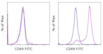 Description: The H1.2F3 monoclonal antibody reacts with mouse CD69, also known as very early activation antigen (VEA). CD69 is approximately 35 kDa and is expressed on the surface as a disulfide-linked dimer. While a small subset of lymphocytes in the thymus, spleen and lymph nodes express this antigen, activation of both T and B cells rapidly upregulates the surface expression of CD69, suggesting a role for CD69 in lymphocyte development and activation.