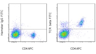 Description: The H57-597 monoclonal antibody reacts with the beta chain of mouse TCR. TCR beta is expressed by thymocytes in a developmentally regulated manner and a majority of peripheral T cells. Crosslinking of the TCR complex with H57-597 induces activation and proliferation of T cells or apoptosis based on assay conditions. H57-597 is used as a phenotypic marker for TCR beta expressing T cells.