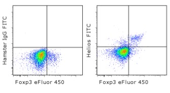 Description: This 22F6 monoclonal antibody reacts with human, mouse and canine Helios. Helios is a zinc-finger transcription factor first identified for its similarity to Ikaros. It is expressed in hematopoietic stem cells in both the embryo and adult mice. While the highest expression is found in regulatory T cells, Helios is not expressed in mature B cells, dendritic cells or myeloid cells. Helios can form a homodimer as well as heterodimerize with other Ikaros family members to regulate transcription. Eight isoforms of Helios exist, some of which possess a dominant-negative function that has also been found to be upregulated in lymphoid malignancies, including T-acute lymphoblastic leukemia.