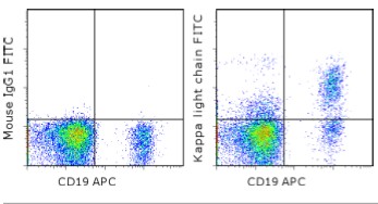 Description: The monoclonal antibody TB28-2 recognizes the kappa light chain of human immunoglobulin. Approximately 22-kDa, the Ig kappa chain is comprised of one variable and one constant region. Two kappa chains together with the heavy chain comprise the whole Ig structure. Expression of Ig kappa is typically found on more than half of B lymphocytes.