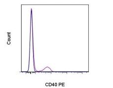 Description: The 5C3 monoclonal antibody reacts with human CD40, a 45-50 kDa type I transmembrane glycoprotein. CD40 is a member of the TNFR family and is expressed by B lymphocytes, follicular dendritic cells, thymic epithelium, and a subset of peripheral T cells. CD40 regulates B cell development and maturation by inducing Ig isotype-switching and in combination with other signals such as IL-4, protects B cells from surface Ig-induced apoptosis and promotes proliferation. Interaction of CD40 with CD154 (gp39), its ligand on T cells, is important in T-B cell crosstalk and plays a role in costimulation and immune regulation. 5C3 is reported to be used for activation of B cells in in vitro functional assays.