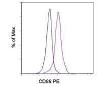 Description: The IT2.2 monoclonal antibody reacts with human CD86, an ~80 kDa surface receptor also known as B7-2. CD86 and CD80 are members of the B7 family of costimulatory molecules. CD86 is expressed at low levels on B cells, macrophages, and dendritic cells and is upregulated on B cells through a variety of surface stimuli including the BCR complex, CD40 and some cytokine receptors. In addition to CD80 (B7-1), CD86 is a counter-receptor for the T cell surface molecules CD28 and CD152 (CTLA-4). The interaction of CD86 with its ligands plays a critical role in T-B crosstalk, T cell costimulation, autoantibody production and Th2-mediated Ig production. The kinetics of upregulation of CD86 upon stimulation supports its major contribution during the primary phase of an immune response.