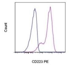 Description: The eBioC9B7W monoclonal antibody recognizes mouse CD223 (LAG-3, LAG3) protein expressed by activated alpha/beta-TCR bearing T cells, a subset of gamma/delta-TCR bearing T cells and a subset of NK cells. CD223 is a 70 kDa type I transmembrane protein with a structure that is similar to CD4. However, a soluble form of human CD223 has been detected by ELISA in human serum, and data suggest that mouse CD223 is proteolytically cleaved in the D4 domain. This results in a 54 kDa fragment containing all the extracellular domains, and a 16 kDa fragment containing the intracellular and transmembrane domains. The 54 kDa can remain membrane-associated or be released as soluble CD223.