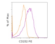 Description: The RM134L monoclonal antibody reacts with mouse CD252 also known as OX-40 Ligand, a member of the TNF superfamily. OX-40L is induced on mouse splenic B cells stimulated with a combination of anti-IgM and anti-CD40. Neither resting nor activated mouse T cells express OX-40L. The interaction of OX-40 (CD134) with OX-40L has been implicated in T cell-dependent humoral response. RM134L inhibits the costimulatory activity of mouse OX-40L transfected cells for anti-CD3-stimulated T cell proliferation.
