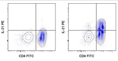 Preliminary data suggest that clone mhalx21 recognizes a different epitope than anti-mouse IL-21 clone FFA21 (cat. 51-7211).