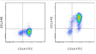 Description: This PFFM3 monoclonal antibody reacts with human CCL3. CCL3, also known as MIP-1 alpha (Macrophage Inflammatory Protein 1 alpha), is a member of the CC- subfamily of chemokines and is most closely related to CCL4, or MIP-1 beta. These proteins play critical roles in the recruitment of leukocytes to the site of inflammation. While both CCL3 and CCL4 will attract monocytes, macrophages, and dendritic cells, CCL3 preferentially attracts CD8+ T cells, while CD4+ T cells are more responsive to CCL4. In addition to its chemotactic functions, CCL3 induces inflammatory cytokine secretion, mast cell degranulation, and NK cell activation. It has also been reported to inhibit hematopoetic stem cell proliferation and may be responsible for the maintenance of these cells in a quiescent state.