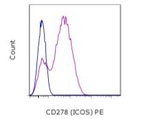Description: The 15F9 monoclonal antibody reacts with mouse ICOS (Inducible COStimulatory molecule), a T cell specific molecule and a third member of the CD28/CTLA-4 family. A homodimer of 47-57 kDa, ICOS is expressed on activated T cells, has potent costimulatory activity for T cell activation and proliferation and is required for humoral immune response. ICOS binds to its ligand on activated APC including B cells called B7h/B7RP-1 and is thought to play a protective role in inflammatory autoimmune diseases. ICOS may be involved in the development of Th2 cells.