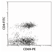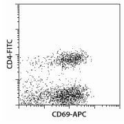 Clone FN50 recognizes the human CD69 antigen, also known as activation inducer molecule (AIM). CD69 is involved in the early events of lymphocyte, monocyte, and platelet activation. Cross-linking of CD69 induces cytotoxic activity and costimulates cytokine production of activated NK cells and selected T cell clones. CD69 is transiently expressed on activated leukocytes including T cells, thymocytes, B cells, NK cells, neutrophils, and eosinophils. It is constitutively expressed by a subset of medullary mature thymocytes, platelets, mantle B cells, and certain CD4+ T cells in germinal centers of normal lymph nodes.