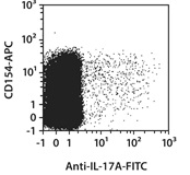 Clone CZ8-23G1 detects human interleukin 17 (IL-17). Interleukin 17A (CTLA8), a member of the IL-17 family (IL-17A–F), is a disulfide-linked homodimeric glycoprotein. Human IL-17A consists of 155 amino acids with a molecular weight of around 35 kDa. IL-17A is produced by CD4+T helper cells, a third T cell subset termed Tʜ17, which secrete also cytokines such as IL-17F and IL-22 and express the NK cell marker CD161. IL-17A secretion has also been described for other cell types, such as CD8+memory T cells. Furthermore, intracellular IL-17A has also been detected in eosinophils, neutrophils, and blood monocytes. Emerging data about Tʜ17 cells suggest that these cells are involved in the recruitment of neutrophils to control early stages of infections to a number of pathogens, such as extracellular bacteria and fungi. IL-17A and Tʜ17 cells have been shown to play an important role in immune-mediated diseases, such as rheumatoid arthritis, psoriasis, multiple sclerosis, asthma, inflammatory bowel diseases, and other immune-mediated inflammatory conditions.