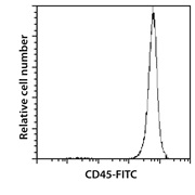 Clone 30F11 recognizes the mouse CD45 antigen (Ly-5, leukocyte common antigen) which is expressed at high levels on all cells of hematopoietic origin except for erythrocytes. The CD45 antibody clone 30F11 reacts with all CD45 isoforms. CD45 (Ly-5, leukocyte common antigen) can be used to discriminate leukocytes from nonhematopoietic cells.
