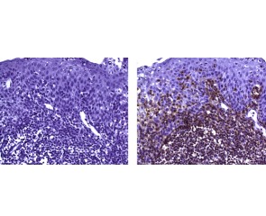 Description: The monoclonal antibody PD7/26 recognizes CD45RB, which is an isoform of the Leukocyte Common Antigen (LCA) also known as CD45. CD45RB is a protein tyrosine phosphatase receptor that is present on most hematopoietic cells and absent on non-hematopoietic cells. Expression of CD45RB is more restricted than CD45 and can only be found on T cell subsets, B, NK, and myeloid cells. Regulatory T cells (Tregs) have been show to express low levels of CD45RB, which may correlate with increased migration to sites of infection. In contrast, high CD45RB expression results in IL-2 and IFN gamma production instead of IL-4 in vitro.