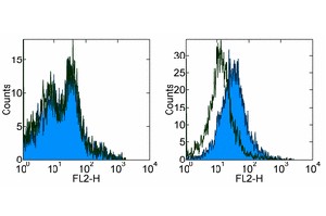 Description: The J43 monoclonal antibody reacts with mouse PD-1 (programmed death-1), a 55 kDa member of the Ig superfamily. PD-1 contains the immunoreceptor tyrosine-based inhibitory motif (ITIM) and plays a key role in peripheral tolerance and autoimmune disease in mice. PD-1 is expressed mainly on activated T and B lymphocytes. Two novel B7 Family members have been identified as PD-1 ligands, PD-L1 (B7-H1) and PD-L2 (B7-DC). Evidence reported to date suggests overlapping functions for these ligands and their constitutive expression on some normal tissues and upregulation on activated antigen-presenting cells. It is reported that J43 inhibits the binding of mouse PD-L1-Ig and mouse PD-L2-Ig to PD-1/BHK transfected cells. When administrated in vivo, both intact and Fab of J43 are reported to enhance contact hypersensitivity and exacerbate acute GVHD similar to transfer of PD-1-deficient cells. Injection of J43 also exacerbates EAE and NOD diabetes as do specific antibodies to mouse PD-L1 and PD-L2.