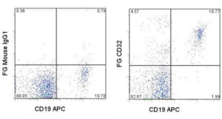 Description: This 6C4 monoclonal antibody reacts with human CD32 (also known as Fc gammaRII). This antibody recognizes two isoforms of the receptor, Fc gammaRIIA and Fc gammaRIIB. These 40-kDa polymorphic transmembrane glycoproteins are expressed on B cells, granulocytes, monocytes, macrophages, and platelets. Moreover, these receptors are detected on natural killer cells. CD32 enables interaction between Fc gammaRII-expressing cells and opsonized antigen or IgG-containing immune complexes. Both receptors exhibit low affinity towards IgG and play a role in inflammation and autoimmune disease. This clone has been reported to inhibit Ig binding in a rosette blocking assay.