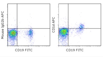 Description: The monoclonal antibody 51.1 reacts with human CD1d, a member of the CD1 family with similarity to the non-polymorphic MHC Class I-like molecules. CD1d is a highly conserved single transmembrane receptor of the Immunoglobulin Superfamily. CD1d can associate with beta-microglobulin another feature showing similarity to MHC class I molecules, but can also exist as a nonglycosylated protein not in association with beta microglobulin. This suggests different control mechanisms for presenting glycolipid containing molecules to CD1d reactive NKT cells. Expression of CD1d is found on B cells of the periphery, in resting monocytes and cortical thymocytes. On intestinal epithelial cells (IEC) expression is polarized. Expression can also be found at low levels intracellularly in hepatocytes. In HCV (hepatitis C virus) livers, CD1d is highly expressed compared to normal controls.