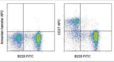 Description: The LG.7F9 monoclonal antibody reacts with mouse CD27, a lymphocyte-specific member of the TNFR superfamily. CD27 is expressed by virtually all mature T cells and by a subpopulation of B cells, mainly memory B cells. In mouse, CD27 has been found on nearly all thymocytes excluding a population of CD46-CD8- precursors. CD27 binds to CD70 and, through this interaction, plays an important role in T cell-B cell interaction. It has been reported that triggering CD27 plays an important role in the maturation of CD4+ and CD8+ effector cells. LG.7F9 cross-reacts with human and rat CD27.