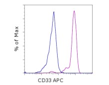 Description: The WM-53 monoclonal antibody reacts with human CD33, also known as GP67 and P67, a 67 kDa type I transmembrane glycoprotein that is a member of the Siglec (sialic acid-binding Ig superfamily lectin) family. It is highly specific to the hematopoietic compartment and is expressed on monocytes, activated T cells, granulocytes, myeloid progenitors, and mast cells.