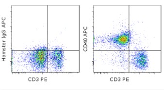 Description: The HM40-3 monoclonal antibody reacts with mouse and rat CD40, a 45-50 kDa type I transmembrane glycoprotein. CD40 is a member of the TNFR family and is expressed by mouse B lymphocytes, follicular dendritic cells, thymic epithelium, and a subset of peripheral T cells. CD40 regulates B cell development/maturation by inducing Ig isotype switching and in combination with other signals such as IL-4, protects B cells from surface Ig-induced apoptosis and promotes proliferation. Interaction of CD40 with CD154 (gp39), its ligand on T cells, is important in T-B cell crosstalk and plays a role in costimulation and immune regulation.