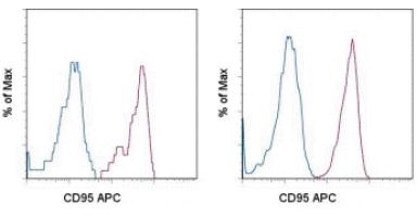 Description: The DX2 monoclonal antibody reacts with human CD95 (Fas, Apo-1), a 40-50 kDa member of the TNFR superfamily. CD95 is expressed by a broad range of hematopoietic and non-hematopoietic cells including monocytes, neutrophils, lymphocytes and fibroblasts. Interaction of CD95 on mature lymphocytes with its ligand (FasL) induces apoptosis and is thought to be important in peripheral tolerance. DX2 does not block binding of EOS9.1, another antibody specific for human CD95.