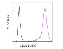 Recently, it was demonstrated that EPCR expression identified cells in the bone marrow that are capable of hematopoietic reconstitution activity comparable to hematopoietic stem cells isolated with conventional methods. The eBio1560 monoclonal antibody can be used for the detection of these hematopoietic stem cells, however the eBiomRCR-16 monoclonal antibody should only be used for the detection of CD201 on endothelial cells.