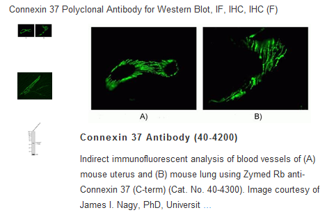 40-4200 was used in the immunofluorescence (IHC) analysis to successfully detect Connexin 37 in mouse heart sections.
