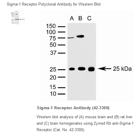 Synthetic peptide derived from the C-terminal region of the rat sigma-1 receptor, which differs from mouse and human by one conservative amino acid change and is predicted to be identical to dog, bovine, and ermine
