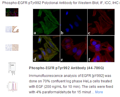 The antiserum was produced against a chemically synthesized phosphopeptide derived from the region of human EGFR that contains tyrosine 992. The sequence is conserved in mouse and rat.
