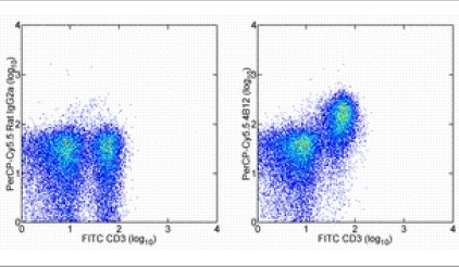 For optimal visualization of CCR7 expression on different cell types it is necessary to use multi-color staining to discriminate different cell subsets as well as following the protocol (incubation at 37C may be necessary). To address specificity, the staining profile of 4B12 has been compared to a polyclonal antibody generated against a CCR7 peptide (Bjorkdahl et al). This analysis confirms that the polyclonal antibody and 4B12 stain similar populations of cells. Furthermore, 4B12 stains mouse CCR7-GFP fusion protein-transfected RBL cells (see data in cat. 14-1971).