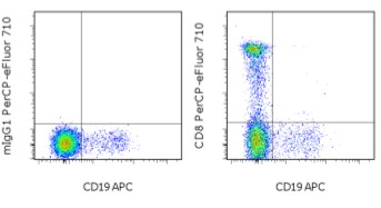 Description: The SK1 monoclonal antibody reacts with the human CD8a molecule, an approximately 32-34 kDa cell surface receptor expressed either as a heterodimer with the CD8 beta chain (CD8 alpha/beta) or as a homodimer (CD8 alpha/alpha). A majority of thymocytes and a subpopulation of mature T cells and NK cells express CD8a. CD8 binds to MHC class I and through its association with protein tyrosine kinase p56lck plays a role in T-cell development and activation of mature T cells.