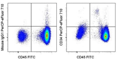 Description: The 4H11 monoclonal antibody reacts with human CD34, also known as mucosialin. CD34 belongs to a protein family which also includes endoglycan and podocalyxin. Members of this family are single pass transmembrane proteins with a heavily glycosylated extracellular and N-terminal mucin domain. CD34 was first identified as an antigen expressed on hematopoietic progenitors, and has since been extensively used as a marker to isolate cells capable of hematopoietic cell engraftment. In spite of this, the function of CD34 remains unresolved. In addition to expression on hematopoietic progenitors, CD34 is expressed on some populations of mesenchymal stem cells, tumor cell lines, and by vascular endothelia in the adult. Epitopes of CD34 have been assigned to three classes (class I, II or III) based on their differential sensitivity to enzymatic cleavage by neuraminidase, chymopapain, or O-glycoprotease. According to this analysis, the 4H11 antibody belongs to class III, indicating that it reacts with a protein epitope.