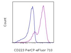 Description: The eBioC9B7W monoclonal antibody recognizes mouse CD223 (LAG-3, LAG3) protein expressed by activated alpha/beta-TCR bearing T cells, a subset of gamma/delta-TCR bearing T cells and a subset of NK cells. CD223 is a 70 kDa type I transmembrane protein with a structure that is similar to CD4. However, a soluble form of human CD223 has been detected by ELISA in human serum, and data suggest that mouse CD223 is proteolytically cleaved in the D4 domain. This results in a 54 kDa fragment containing all the extracellular domains, and a 16 kDa fragment containing the intracellular and transmembrane domains. The 54 kDa can remain membrane-associated or be released as soluble CD223.