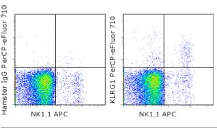 Description: This 2F1 monoclonal antibody reacts with the mouse Killer cell Lectin-like Receptor G1 (KLRG1), also known as Mast cell Function-associated Antigen (MAFA). KLRG1 is a homodimer of glycosylated 30-38 kDa subunits and contains a cytoplasmic motif similar to the immunoreceptor tyrosine-based inhibitory motif (ITIM). Rat MAFA was identified as an antigen specific to rat mast cells; however, the expression of mouse KLRG1/MAFA using 2F1 has not been detected on the surface of mouse mast cell lines, bone marrow-derived mast cells, or peritoneal mast cells. This antigen is expressed on approximately one-third of mouse NK cells and a subset of T cells. MHC class I molecules regulate KLRG1 via interactions with class I-specific inhibitory Ly49 molecules and SHP-1 signaling. Although KLRG1 and Ly49 are both lectin-like inhibitory receptors that are regulated by class I MHC expression, the effects of this on cell surface expression of these molecules are opposing, and the underlying regulatory mechanisms distinct.