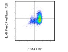 Description: This 8CH monoclonal antibody reacts with human IL-8 (CXCL8), a pro-inflammatory CXC chemokine. It is synthesized as a 99 amino acid precursor protein that is further processed into one of four isoforms, with the most common being 72 or 77 amino acids in length. IL-8(77) is secreted primarily by endothelial cells and is thought to be a less potent neutrophil activator than the other forms. It is present at high levels during fetal development, where it mediates angiogenesis rather than inflammation. The predominant form present in adults is IL-8(72), which is expressed by monocytes, macrophages, epithelial cells, and fibroblasts in response to inflammatory stimuli, environmental stress, and steroid hormones. IL-8(72) is essential for the activation and recruitment of neutrophils to sites of inflammation, and has also been found to influence T cell migration. Signaling occurs through the G-protein coupled receptors CXCR1 or CXCR2. IL-8 transcripts are often upregulated in tumors, and it is associated with tumor angiogenesis and metastasis.