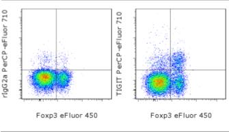 Description: The GIGD7 monoclonal antibody reacts with mouse T cell immunoreceptor with Ig and ITIM domains (TIGIT, VSTM3, WUCAM), a 26 kDa protein that is a member of the poliovirus receptor (PVR) family. In mice, the expression of TIGIT has been reported in follicular T helper cells, while in humans, the expression of TIGIT has been reported on NK cells, regulatory T cells, follicular T helper cells, memory CD4+ T cells, and CD8+ T cells. TIGIT is not expressed on B cells or naïve CD4+ T cells. TIGIT is upregulated on CD4+ T cells following activation. TIGIT can interact with certain members of the PVR and PVR-like families, including CD155, and also mediates the interaction of NK cells and T cells with antigen presenting cells, fibroblasts and endothelial cells that express PVR and PVR-like proteins.