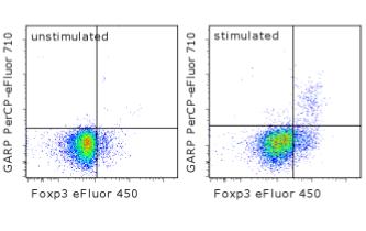 Description: The G14D9 monoclonal antibody reacts with human Glycoprotein A Repetitions Predominant (GARP, also known as LRRC32 or Garpin). GARP is an approximately 80 kDa glycoprotein that is expressed on the cell surface. Using northern blot, RT-PCR or microarray analyses, the expression of GARP has been reported in placenta, lung, kidney, heart, ovary, liver, skeletal muscle, and pancreas. Protein expression has been observed on megakaryocytes, platelets and activated regulatory T (Treg) cells. The expression of GARP on the surface of activated Treg cells has been reported to be necessary for their suppressive function, possibly related to its role as a cell surface receptor for LAP/TGF beta.