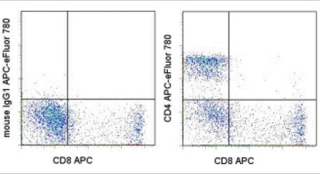 Description: The RPA-T4 monoclonal antibody reacts with human CD4, a 59 kDa cell surface receptor expressed by a majority of thymocytes, subpopulation of mature T cells (T-helper cells) and in low levels on monocytes. CD4 is a receptor for the human immunodeficiency virus (HIV). RPA-T4 blocks HIV binding and mixed lymphocyte reaction. The RPA-T4 antibody recognizes a different epitope than the OKT4 monoclonal antibody, and these antibodies do not cross-block binding to each other's respective epitopes.