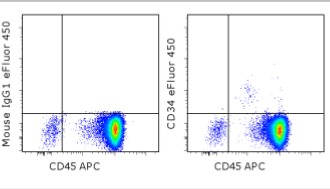 Description: The 4H11 monoclonal antibody reacts with human CD34, also known as mucosialin. CD34 belongs to a protein family which also includes endoglycan and podocalyxin. Members of this family are single pass transmembrane proteins with a heavily glycosylated extracellular and N-terminal mucin domain. CD34 was first identified as an antigen expressed on hematopoietic progenitors, and has since been extensively used as a marker to isolate cells capable of hematopoietic cell engraftment. In spite of this, the function of CD34 remains unresolved. In addition to expression on hematopoietic progenitors, CD34 is expressed on some populations of mesenchymal stem cells, tumor cell lines, and by vascular endothelia in the adult. Epitopes of CD34 have been assigned to three classes (class I, II or III) based on their differential sensitivity to enzymatic cleavage by neuraminidase, chymopapain, or O-glycoprotease. According to this analysis, the 4H11 antibody belongs to class III, indicating that it reacts with a protein epitope.