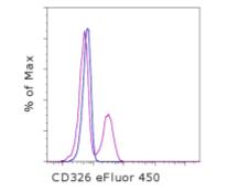 Description: The G8.8 monoclonal antibody reacts with the 40 kDa protein mouse EpCAM (epithelial cellular adhesion molecule), also known as EGP40 (epithelial glycoprotein 40), 17-1A antigen, TACSTD1 (tumor-associated calcium signal transducer 1), and CD326. The immunogen used to generate the G8.8 antibody was the TE-71 thymic epithelial cell line. CD326 is expressed on the majority of epithelial cells, and is considered a pan-carcinoma antigen. CD326 mediates calcium-independent, homophilic, cell-cell adhesion and may function as a growth factor receptor. The antigen is being used as a target for immunotherapy treatment of human carcinomas. CD326 binds LAIR-1 (CD305) and LAIR-2 (CD306) to inhibit cellular activation and inflammation. This epithelial glycoprotein is now recognized as having an important role in tumor biology.
