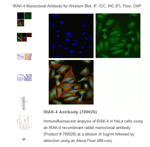 ABfinity™ monoclonal antibodies resemble rabbit monoclonals isolated from serum or produced by hybridomas, but demonstrate greater specificity and sensitivity. Because ABfinity™ recombinant antibodies are derived from cloned DNA sequences of the heavy and light antibody chains, they are not susceptible to cell-line drift or lot-to-lot variation, thus allowing for peak specificity and performance.