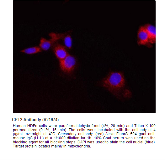 Carnitine palmitoyltransferase II precursor (CPT2) is a nuclear protein which is transported to the mitochondrial inner membrane. CPT2 together with carnitine palmitoyltransferase I oxidizes long-chain fatty acids in the mitochondria. Defects in this gene are associated with mitochondrial long-chain fatty-acid (LCFA) oxidation disorders.