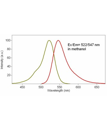 罗丹明6G是最亮的荧光基团之一,总得来说,罗丹明6G偶联物比四甲基罗丹明偶联物具有强的荧光量,切具有耐光性(光稳定性)。罗丹明6G的激发光和发射光的波长在荧光素和四甲基罗丹明衍生物之间,在多颜色荧光成像应用中使5(6)-CR6G能选择其它颜色。运用亚磷酰胺稳定的化学性质,6-罗丹明6G亚磷酰胺使寡核苷酸带有罗丹明6G标签。罗丹明 6G 亚磷酰胺产品的光谱学相关参数为Ex=524nm / Em=551nm;其对应分子量大小为949.91MW。