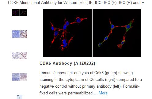 Cyclin-dependent kinase 6 (p40cdk6 also known as PLSTIRE) belongs to a family of proteins designated as cdks are critical regulators of cell cycle progression. The prototype member of this family, p34cdc2, and a related protein cdk2, function late in the cycle while cdk4 and cdk6 are critically involved in G1 to S progression.