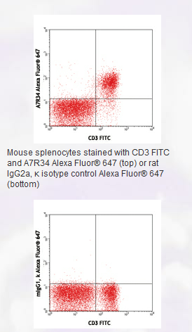 ** Alexa Fluor® 647 is a registered trademark of Molecular Probes, Inc. Alexa Fluor® 647 dye antibody conjugates are sold under license from Molecular Probes, Inc. for research use only, except for use in combination with microarrays and high content screening, and are covered by pending and issued patents.