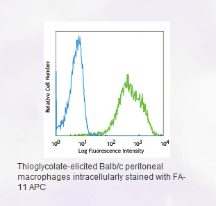 Each lot of this antibody is quality control tested by intracellular immunofluorescent staining with flow cytometric analysis. For immunofluorescent staining, the suggested use of this reagent is ≤0.06 µg per million cells in 100 µl volume. It is recommended that the reagent be titrated for optimal performance for each application.