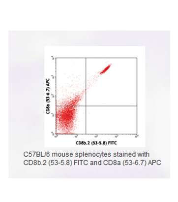 Description:CD8b is the 32 kD β chain of CD8, also known as Lyt-3.2 or Ly-3.2. It is a member of the Ig superfamily expressed as a heterodimer with the CD8α chain on a subset of MHC class I-restricted T cells and most thymocytes. CD8 is a co-receptor for the TCR complex involved in T cell activation. The antibody 53-5.8 is specific for Ly-3.2 and has low reactivity with Ly-3.1.