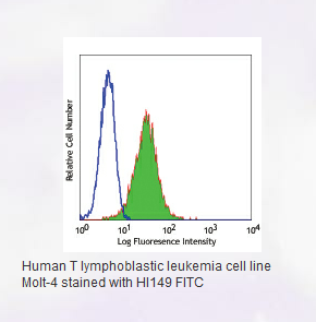 Each lot of this antibody is quality control tested by immunofluorescent staining with flow cytometric analysis. Test size products are transitioning from 20 µl to 5 µl per test. Please check your vial or your CoA to find the suggested use of this reagent per million cells in 100 µl staining volume or per 100 µl of whole blood. It is recommended that the reagent be titrated for optimal performance for each application.