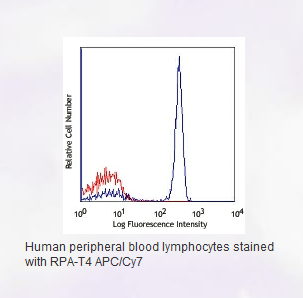 Each lot of this antibody is quality control tested by immunofluorescent staining with flow cytometric analysis. Test size products are transitioning from 20 µl to 5 µl per test. Please check your vial or your CoA to find the suggested use of this reagent per million cells in 100 µl staining volume or per 100 µl of whole blood. It is recommended that the reagent be titrated for optimal performance for each application.